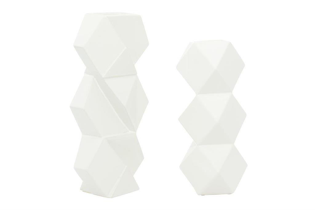 - This set of vases comes with faceted hexagonal bodies with rectangular and square openings