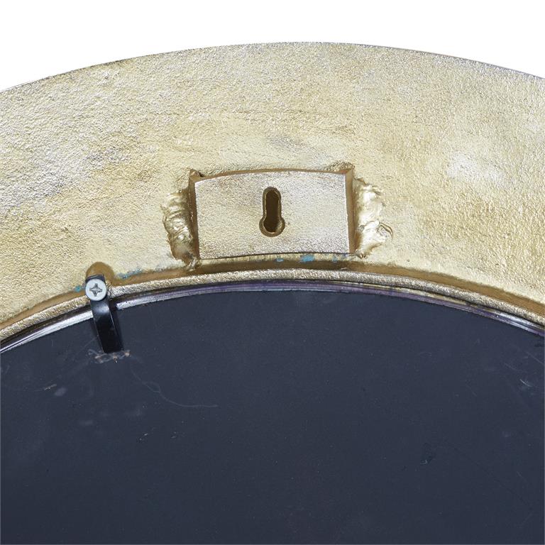 - This ravishing wall mirror showcases an extra large-sized round mirror with a textured metallic gold framing