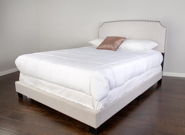 Clean cut and elegant, this headboard features a tasteful nail head trim that adds visual effect without being overwhelming. Stone beige fabric allows you to style the bed however you desire to make it your own. You can guarantee comfort and durability with this soft fabric headboard. Will match with your existing bedroom furniture so updating your master suite has never been easier.