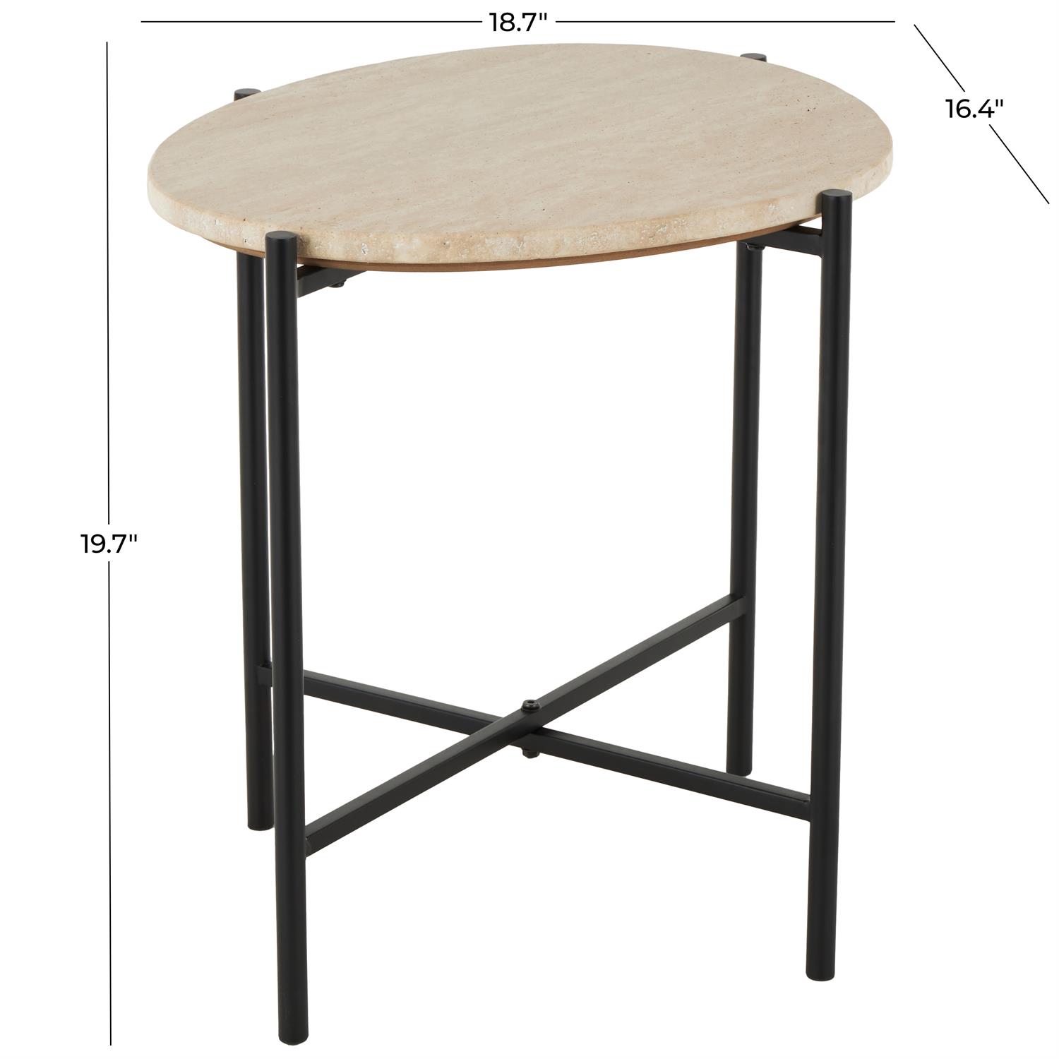 Designed with timeless sophistication, rich old-world textures and warm hues come together for a refined classic taste of luxury. This beige side end accent table is crafted from high-quality marble and sturdy black metal, showcasing durable and style. Round table features a matte beige marble finish with black metal support that adds a traditional touch to your space. This marble accent table boasts a sleek design with a durable support structure that makes it a convenient piece for your home. The beige marble accent table measures 18.7L x 16.4W x 19.7H inches, and weighs 17.73 lbs