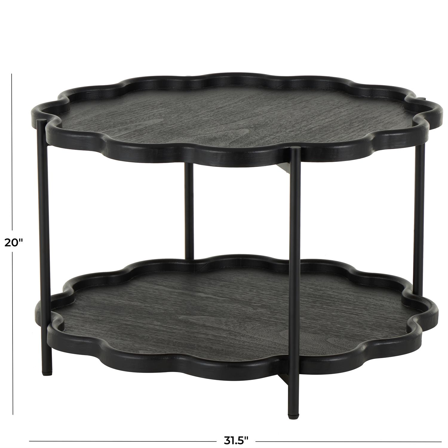 Black Wood Floral Inspired 2 Level Living Room Coffee Table with Metal Legs