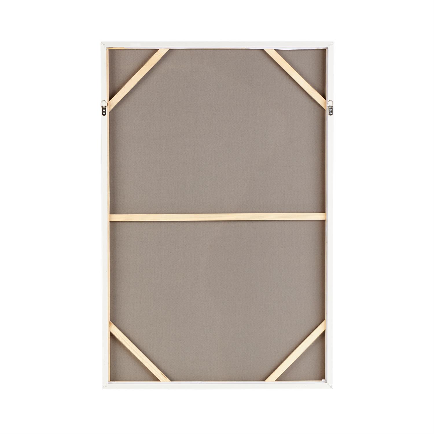 The blue canvas framed wall art measures 31.63L x 1.38W x 47.38H inches, and weighs 6.50 lbs
