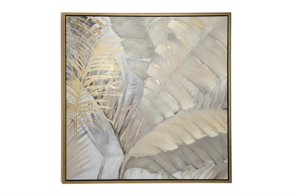 Brown Canvas Leaf Palm Framed Wall Art with Gold Frame