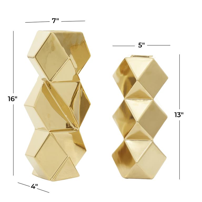 - This set of vases comes with faceted hexagonal bodies with rectangular and square openings