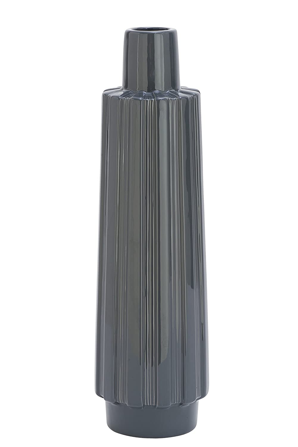Liven up shelves, mantels, tables, or countertops with this decorative ceramic vase. Featuring a unique narrow-necked design with a slightly tapered vertically fluted body, this vase stands out whether used as an accent piece or a functional flower vase. Finished in glossy grey, this vase coordinates well with a wide variety of colors.
