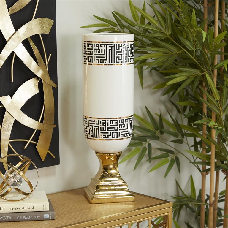 The unique and bold design of this ceramic decorative vase makes it an instant conversation piece and a gorgeous accent décor for your home. Create depth and form onto your space by displaying this beautifully crafted vase. Accessorize your space effortlessly by displaying a beautiful floral arrangement with this decorative vase that’s best to arrange with other home decors.