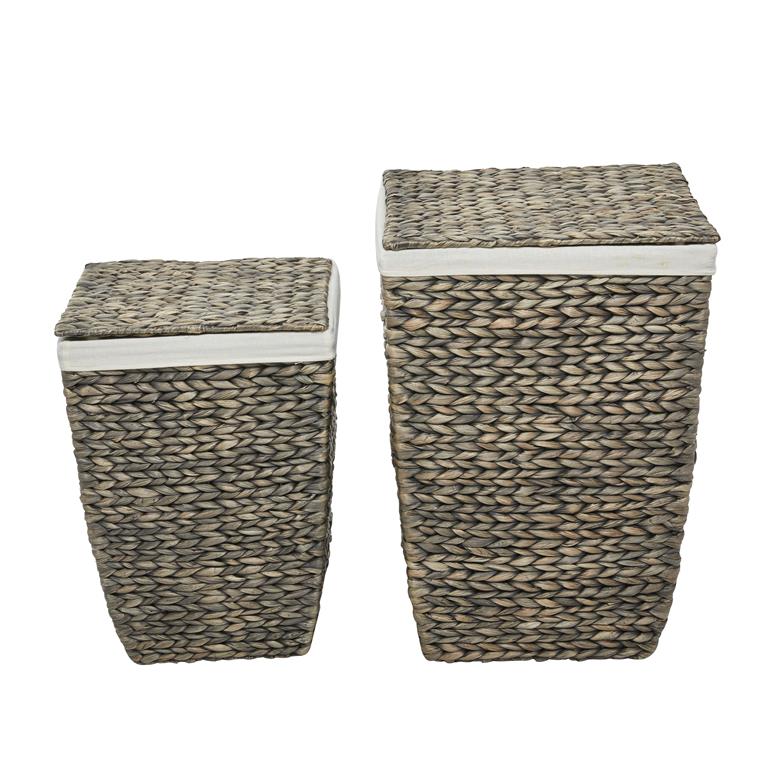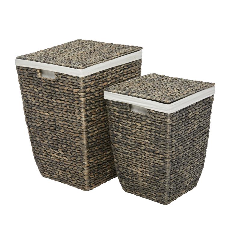 These dark brown storage baskets are crafted of natural seagrass and water hyacinth materials