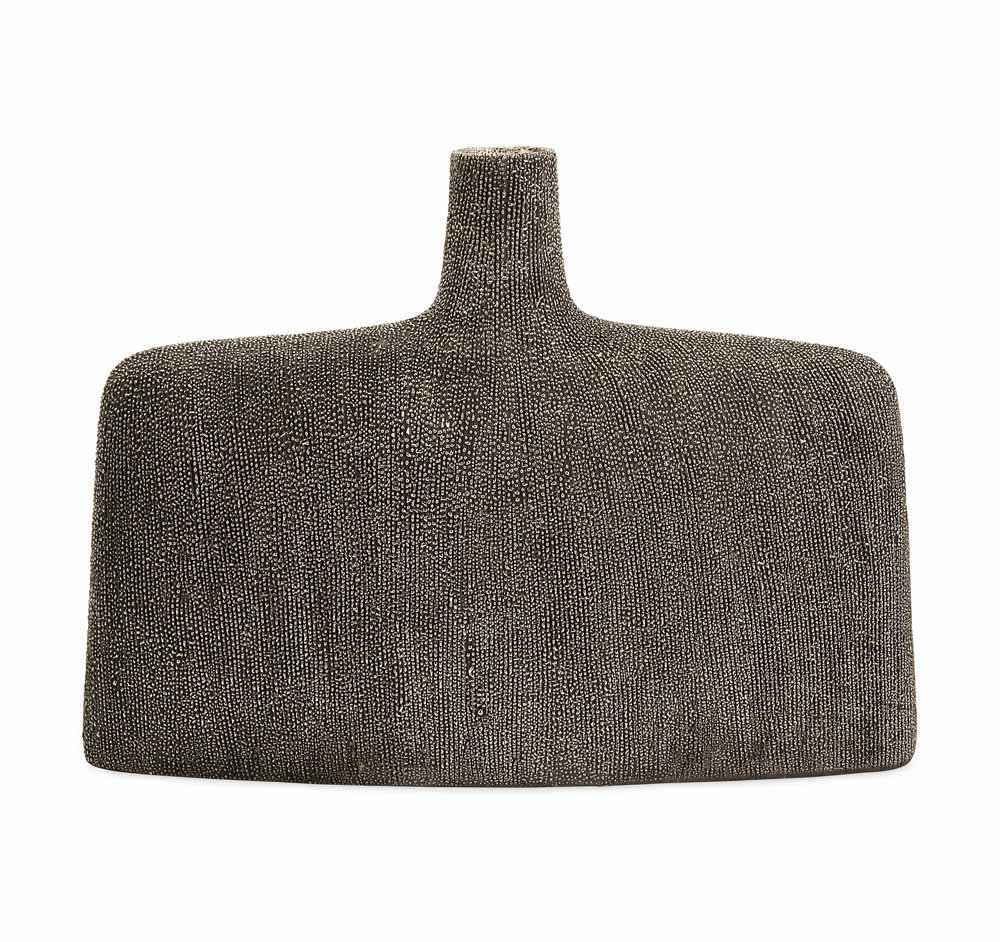 A sleek, beaded surface on a simple, refined shape gives the Duarte Chrome Bead Bottle a sophisticated and modern appeal.