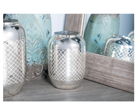 Spruce up the look of your candle display with this elegant candle holder. Crafted from glass, this decorative piece features a rounded jar-shaped holder with crisscross designs and round opening and bottom. It flaunts a textured silver finishing that lends elegance to your space. Complementing modern-glam settings, this candle holder will surely leave your guests impressed.