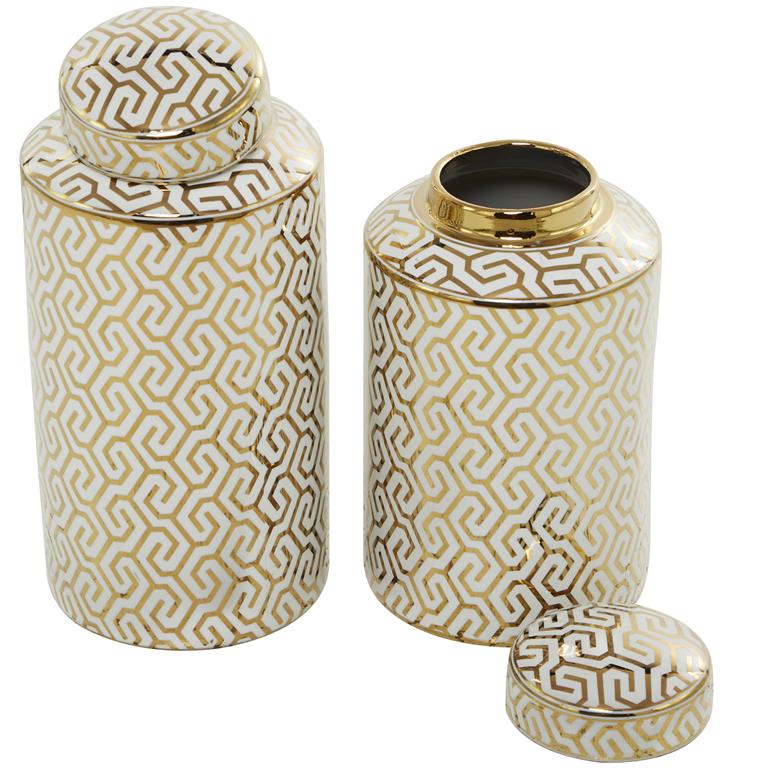 Gold Ceramic Geometric Decorative Jars with Gold Accents, Set of 2