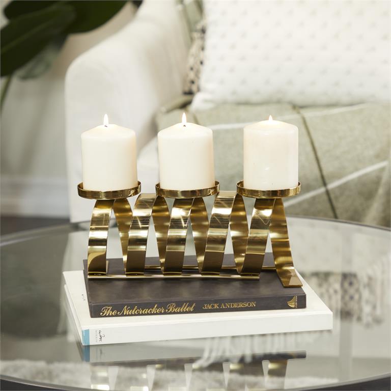 Give your space a radiant illumination with these beautifully crafted candle holders. Made with a sturdy base, it is perfect for creating an elegant atmosphere at your table top or mantel. Light up your living room or bedroom space with this gold candle holder as centerpiece or accent lighting to elevate your indoor aesthetics. Gold candle holder can hold 3 pillar or votive candles on each.