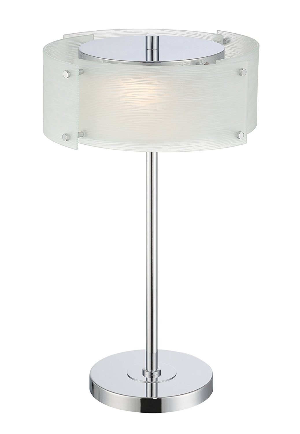 Give your home the contemporary makeover it deserves with this kaelin table lamp from Lite Source. The handsome design is highlighted by four panels of textured glass that overlap to form the shade, all hoisted up by a metal rod with a chrome finish.