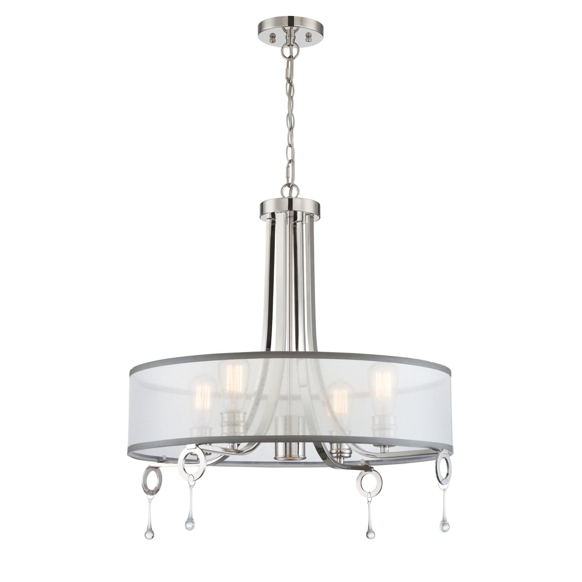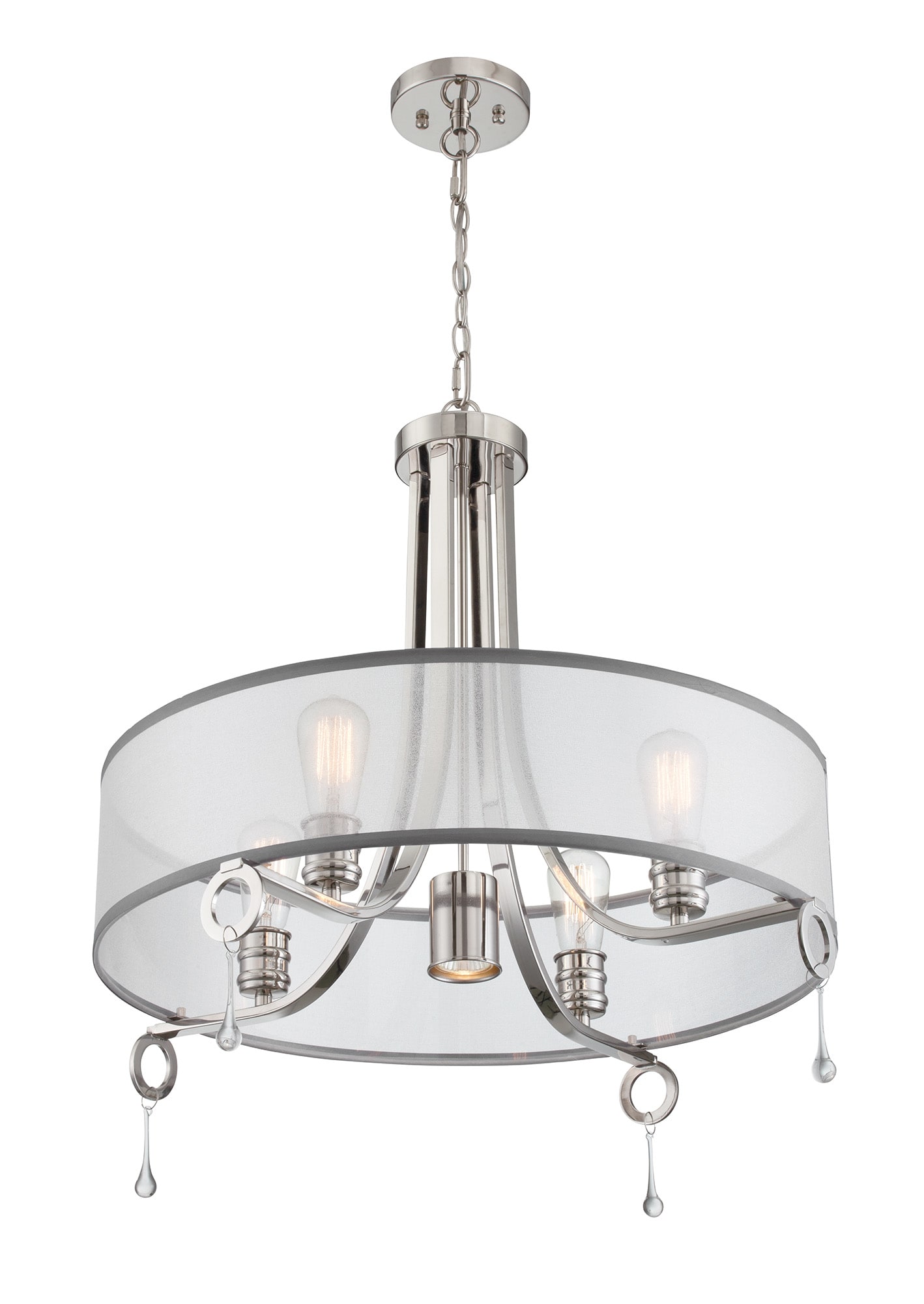 - Frosted organza shade with clear hanging crystal accents