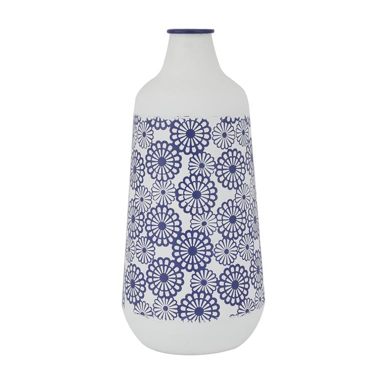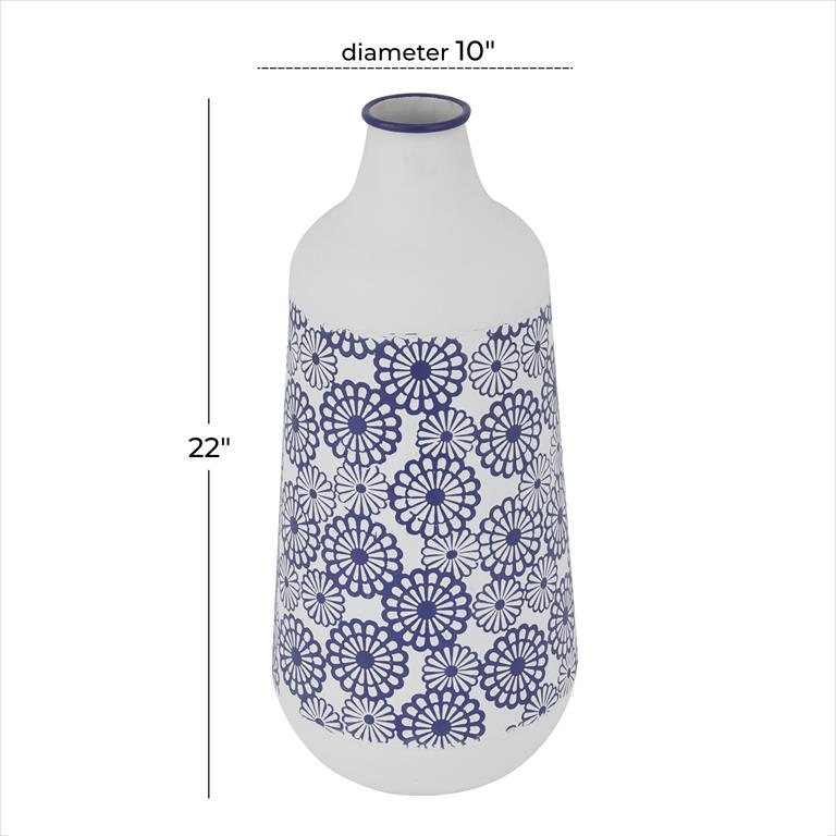 - A decorative vase accentuating an urn-shaped body with floral pattern