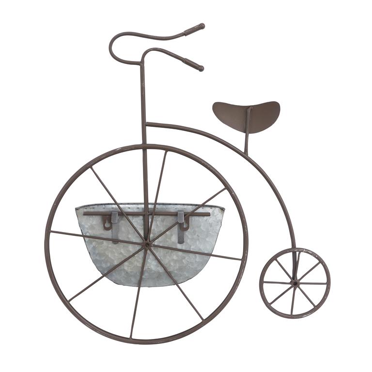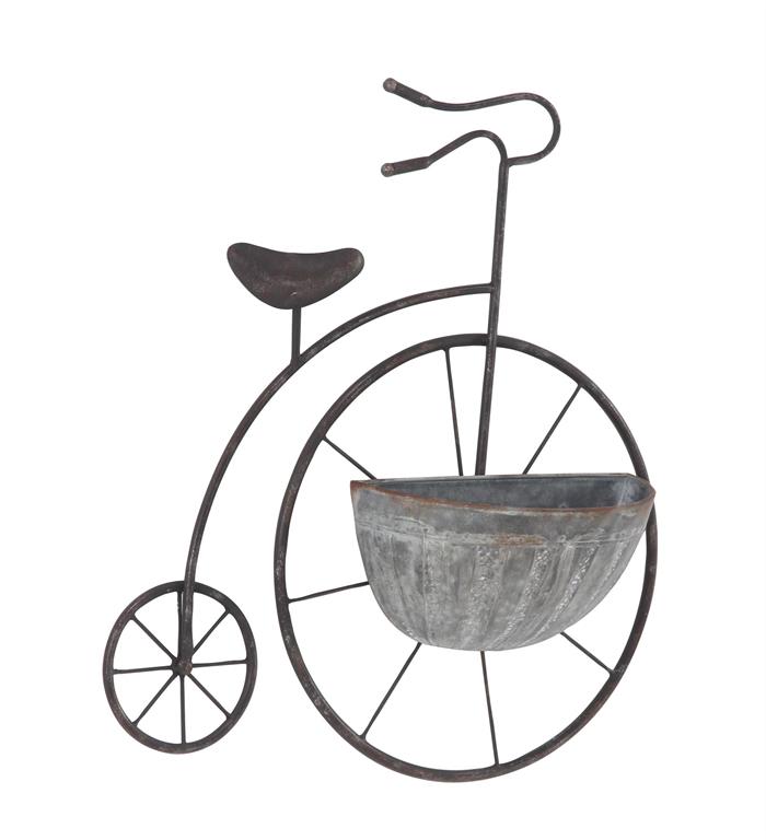 This metal wall planter brings tranquility to your space by allowing you to fill it with plants—hence it promotes wellness and creates an immediate feeling of relaxation. This decorative planter is sure to add bundles of charm to your home. Beautifully detailed, it features a distressed gray finishing with rusted brown highlights and a semi-circular basket planter attached to its front wheel. This wall planter is made out of iron with solid construction, offering durability. Jazz up country cottage and farmhouse themed spaces using this charming accent piece that is ideal for outdoor use. This vintage-inspired bicycle wall plant holder is ideal for farmhouse, natural, and country cottage-themed gardens and living spaces.