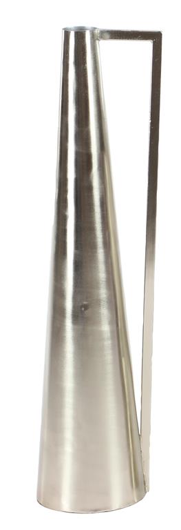 - A cone shaped vase with invert L handle in a solid smooth pattern