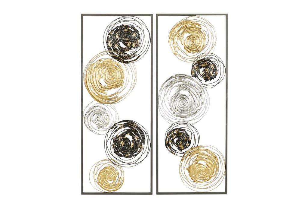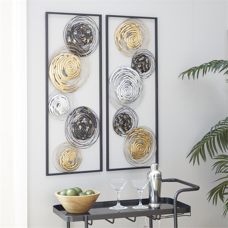 Designed with a black metal frame. Easily hanging using hanging hardware on the back. This set contains 2 metal wall décor pieces. Contemporary design. Easily hanging using hanging hardware on the back.