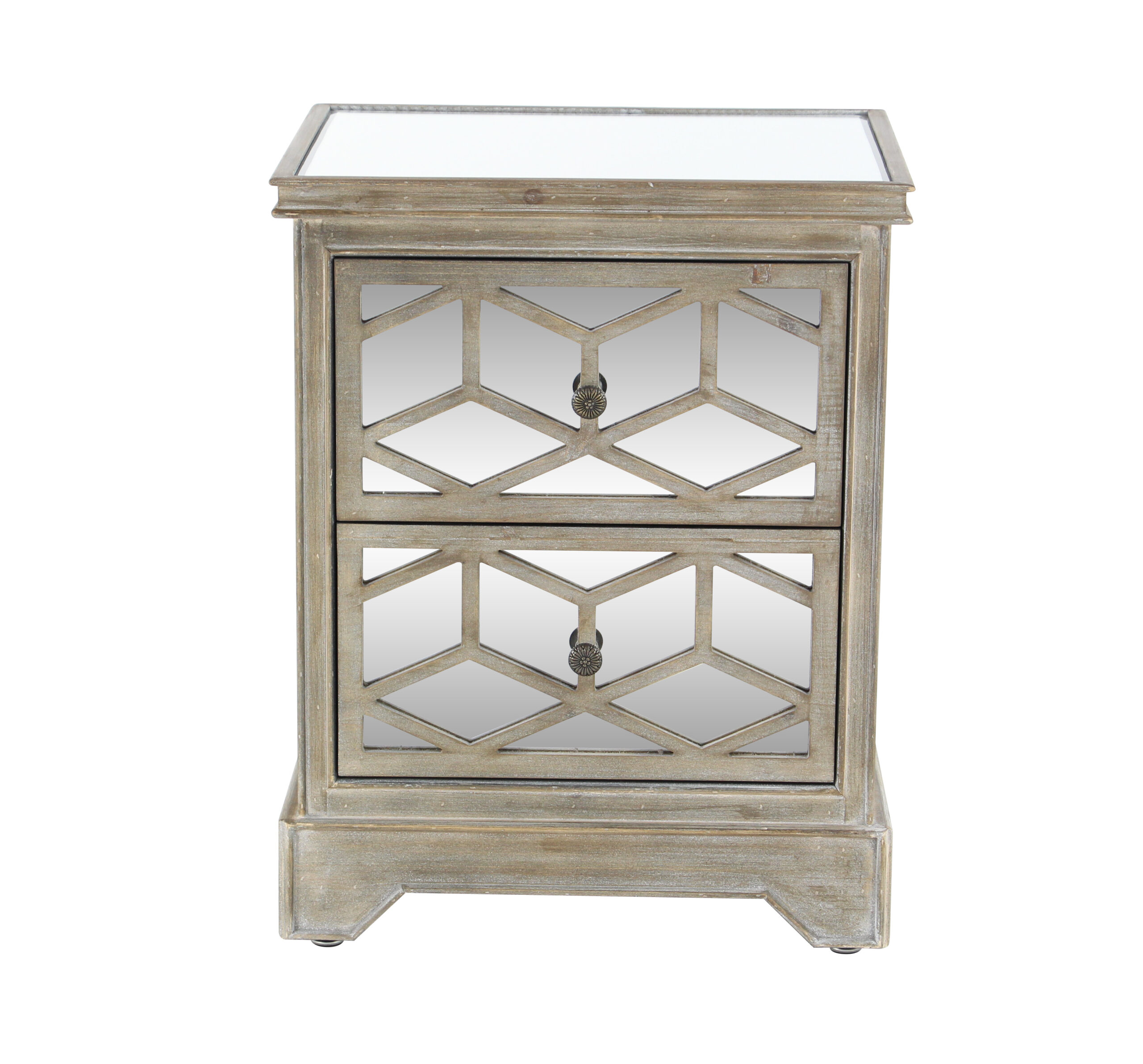 Metal Wood Mirror Nightstands Only – Set of 2 (Console Sold Separately)