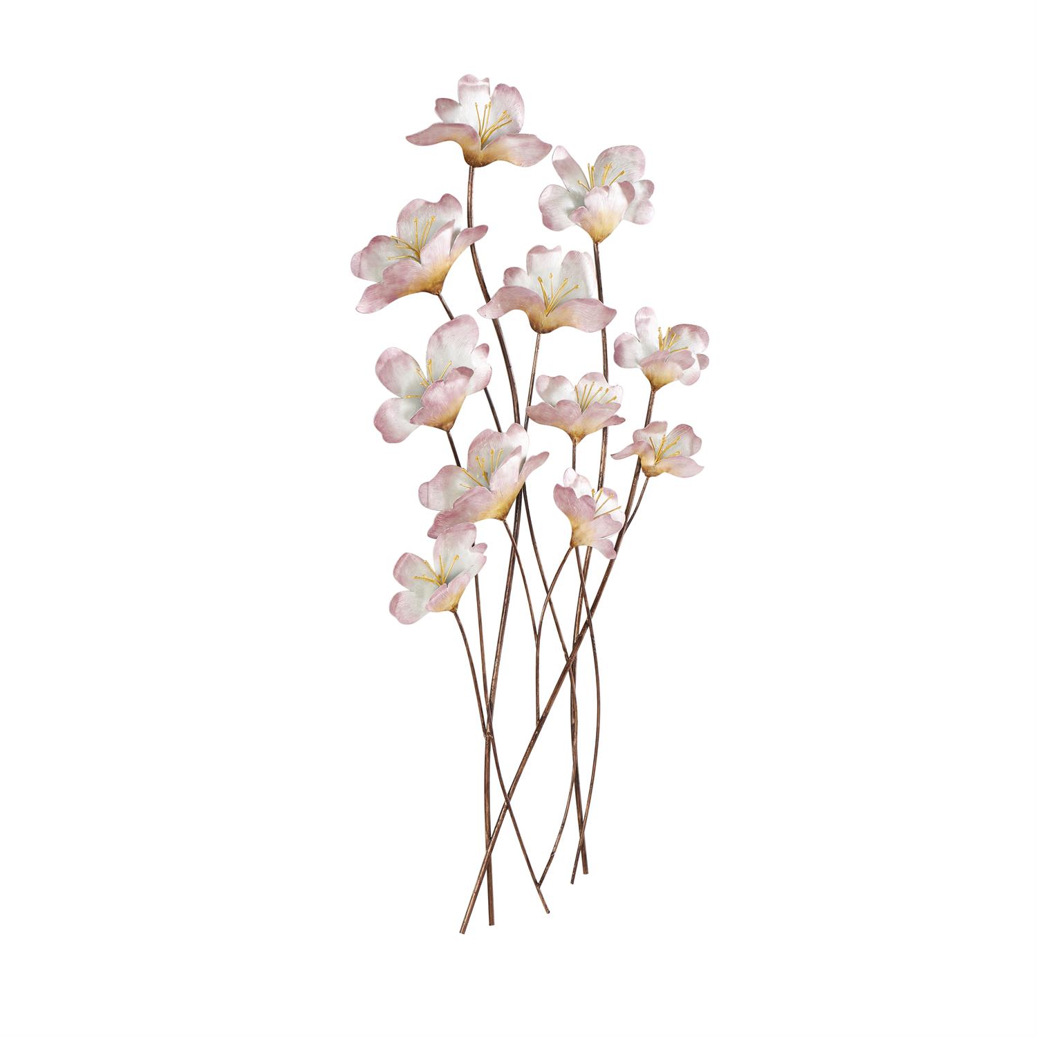 Pink Metal Floral Home Wall Decor with Copper Stems