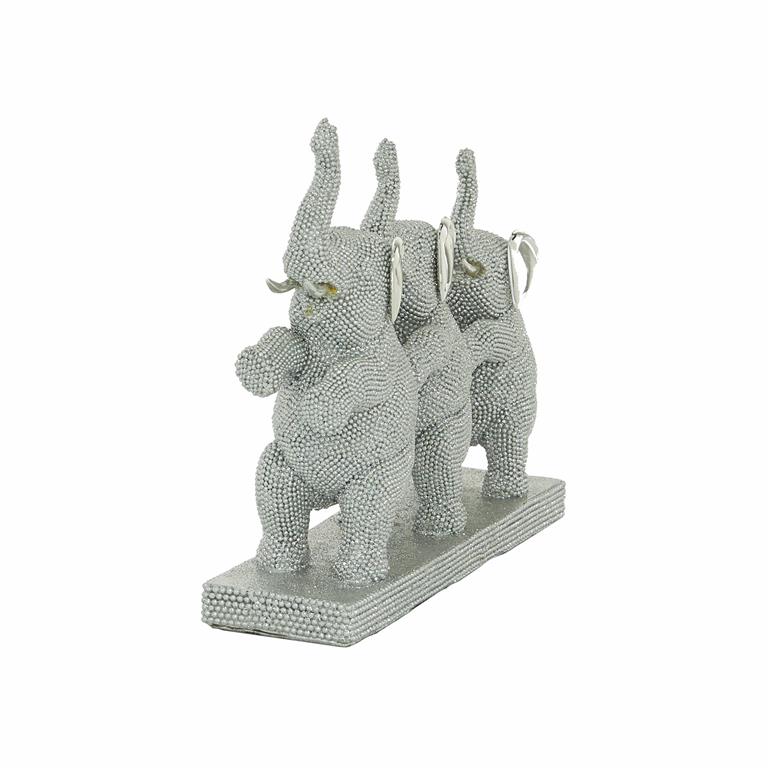 A symbol of good luck, success, and wisdom, these silver elephant figurines with raised trunks look great wherever you put it. Each one of them features a shiny silver finish with round shimmering element all over its body. Display this stunning silver elephant décor to add a wow factor to your living room or bedroom. Crafted of resin material, this figurine is truly sleek and unique, and will definitely delight an elephant décor collector. Display this in your coastal style inspired living room and add some laidback vibes in the atmosphere.