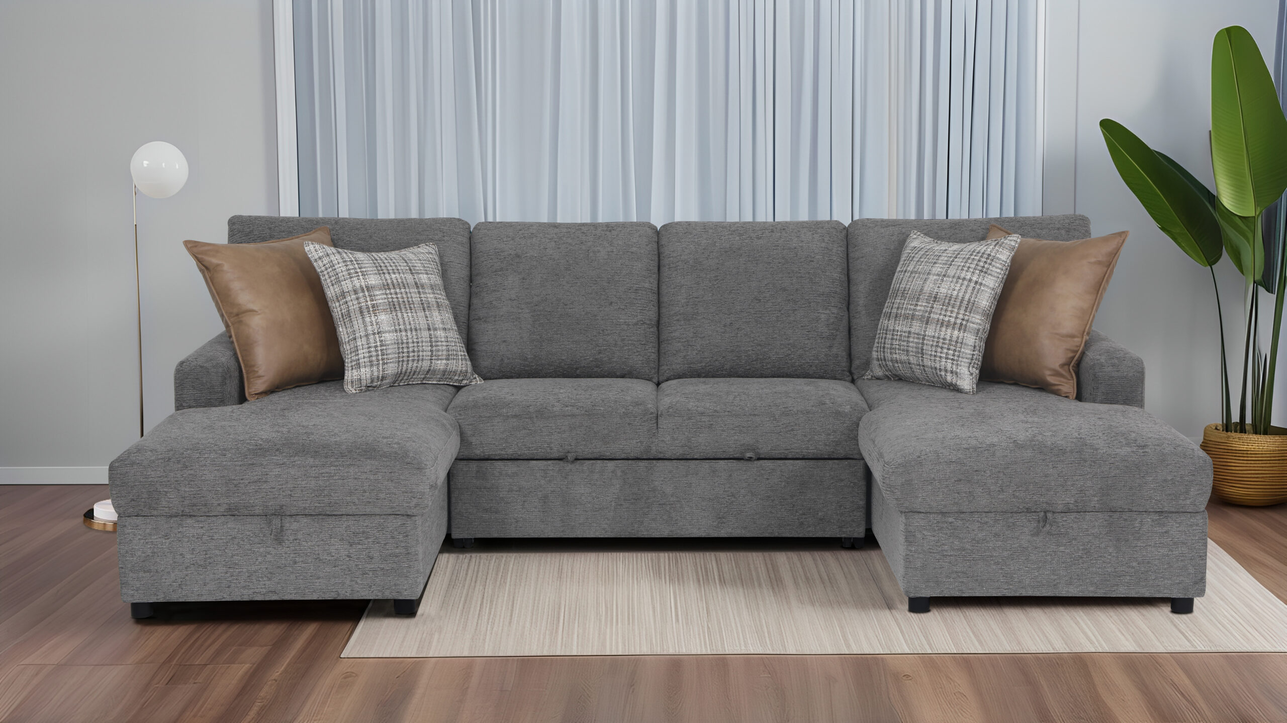 Left arm facing Chaise W/ Storage, Loveseat W/ Sleeper, Right arm facing Chaise W/ Storage – Gray Chenille