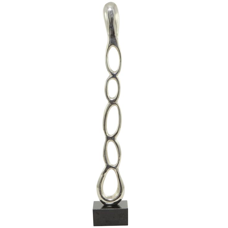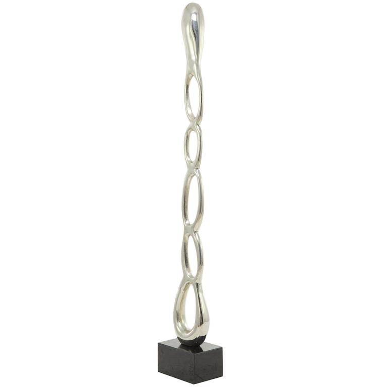Silver Aluminum Abstract Tall Linked Floor Sculpture with Black Base