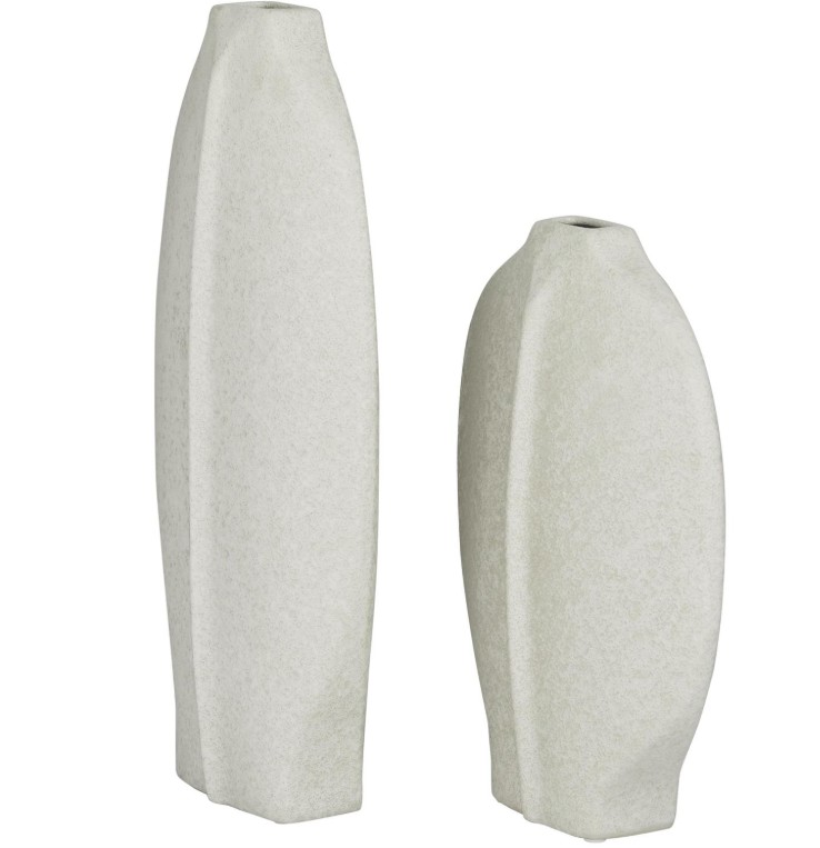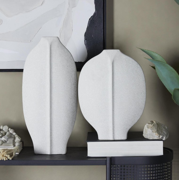 • Stoneware is molded and sculpted with a unique shape to form this modern set of 2 vases for home decor