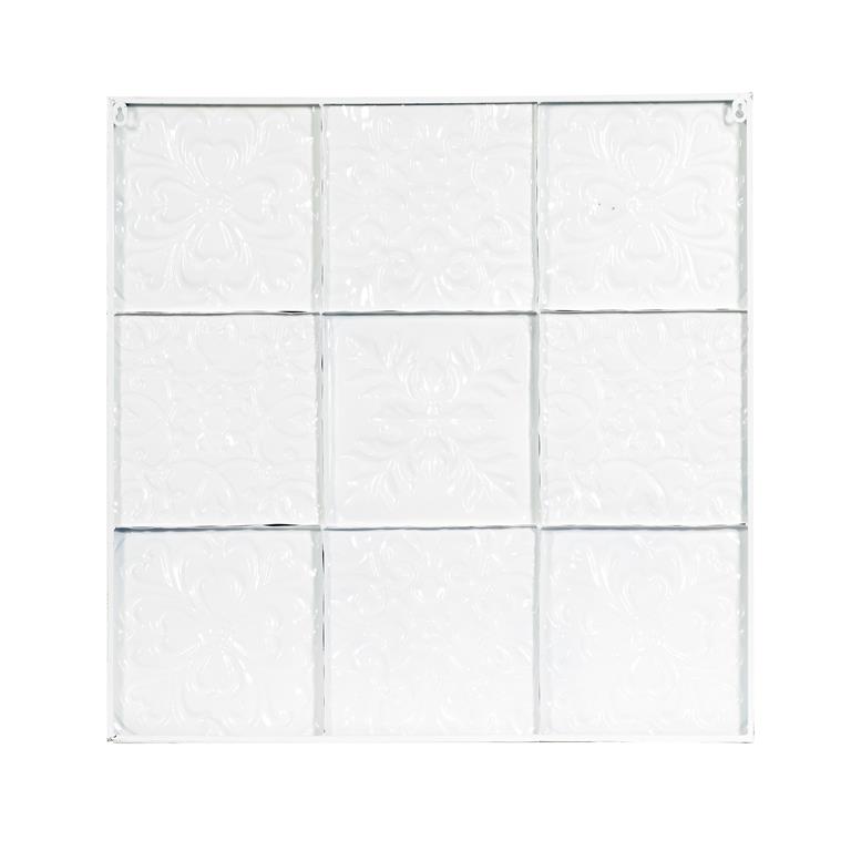 - This elegant wall panel features a square shape and a 9-tiled grid of various flourish designs
