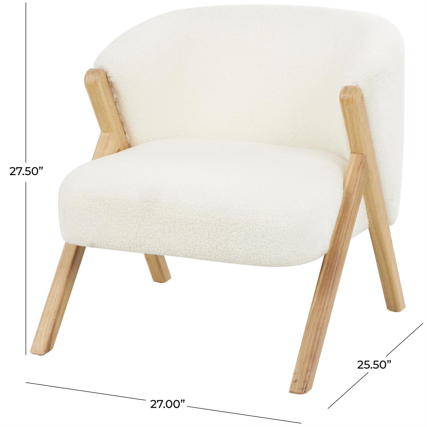 White Polyester Rounded Boucle Living Room Accent Chair with Angled Wooden Legs