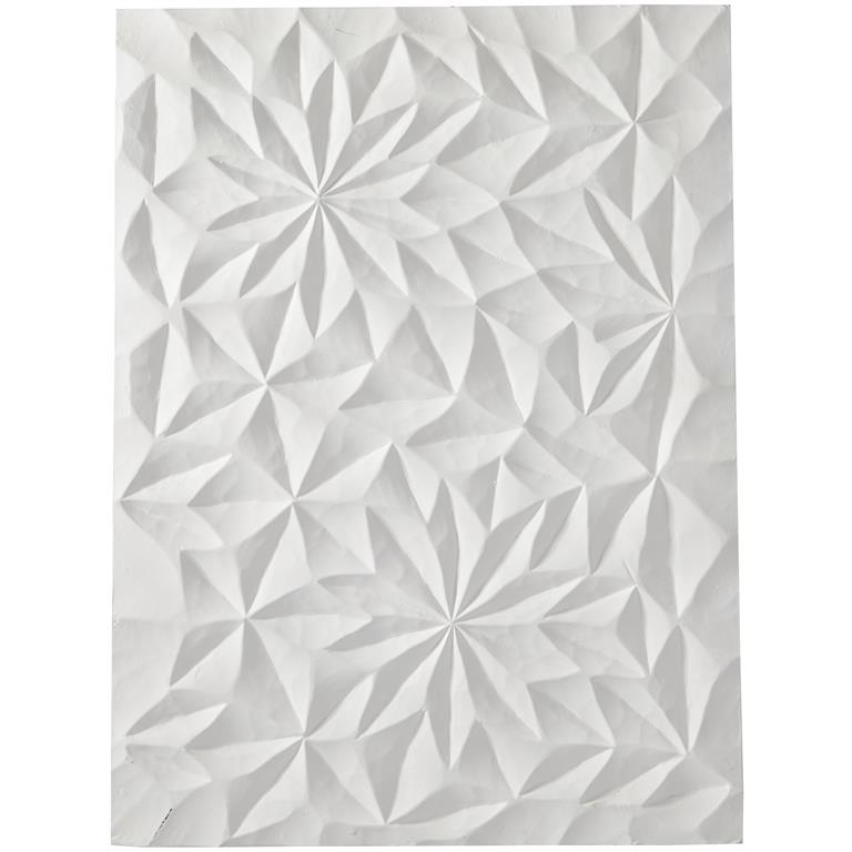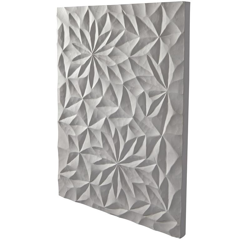 White 3D wall art features a frameless structured with carved out geometric pattern inspired by kaleidoscope illusion