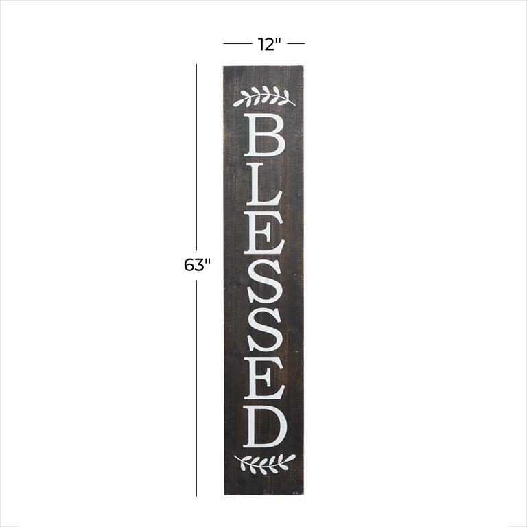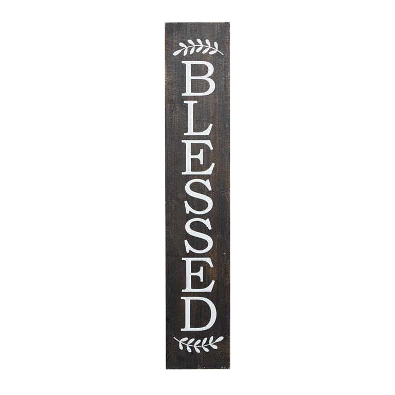 Suitable for indoor use only. The sign reads, “Blessed,” a simple but positive message. Farmhouse-themed style.